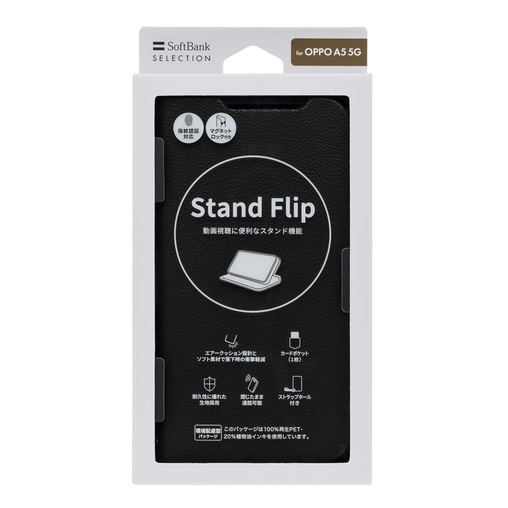 関連情報:SoftBank SELECTION Stand Flip for OPPO A5 5G SB-A106-SDFB/BK ブラック ソフトバンクセレクション 手帳型ケース スタンドフリップ スタンド機能 ストラップホール付き