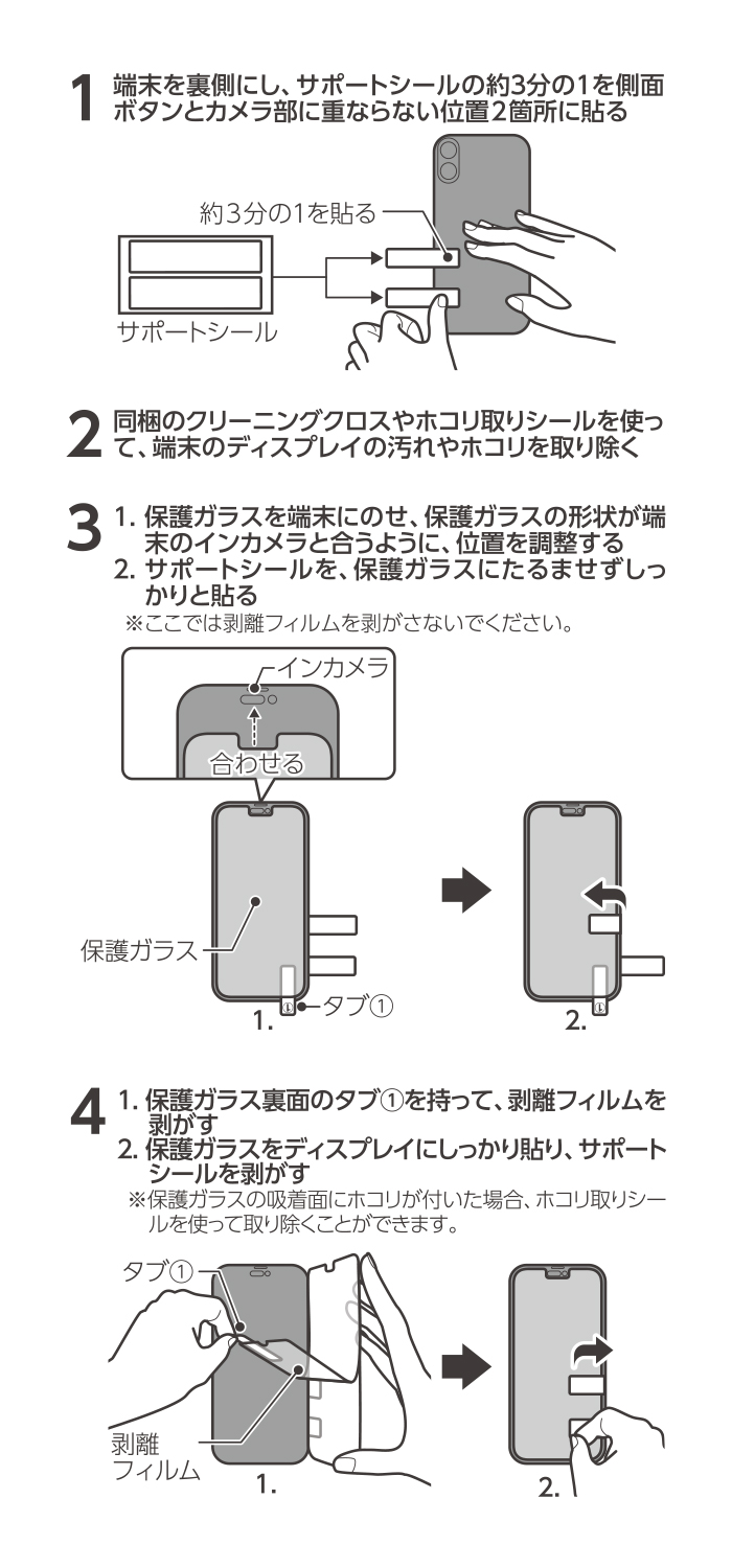 | 製品構成 | 保護ガラス ×1、クリーニングクロス ×1、ホコリ取りシール ×1、サポートシール ×2、取扱説明書/保証書×1 |