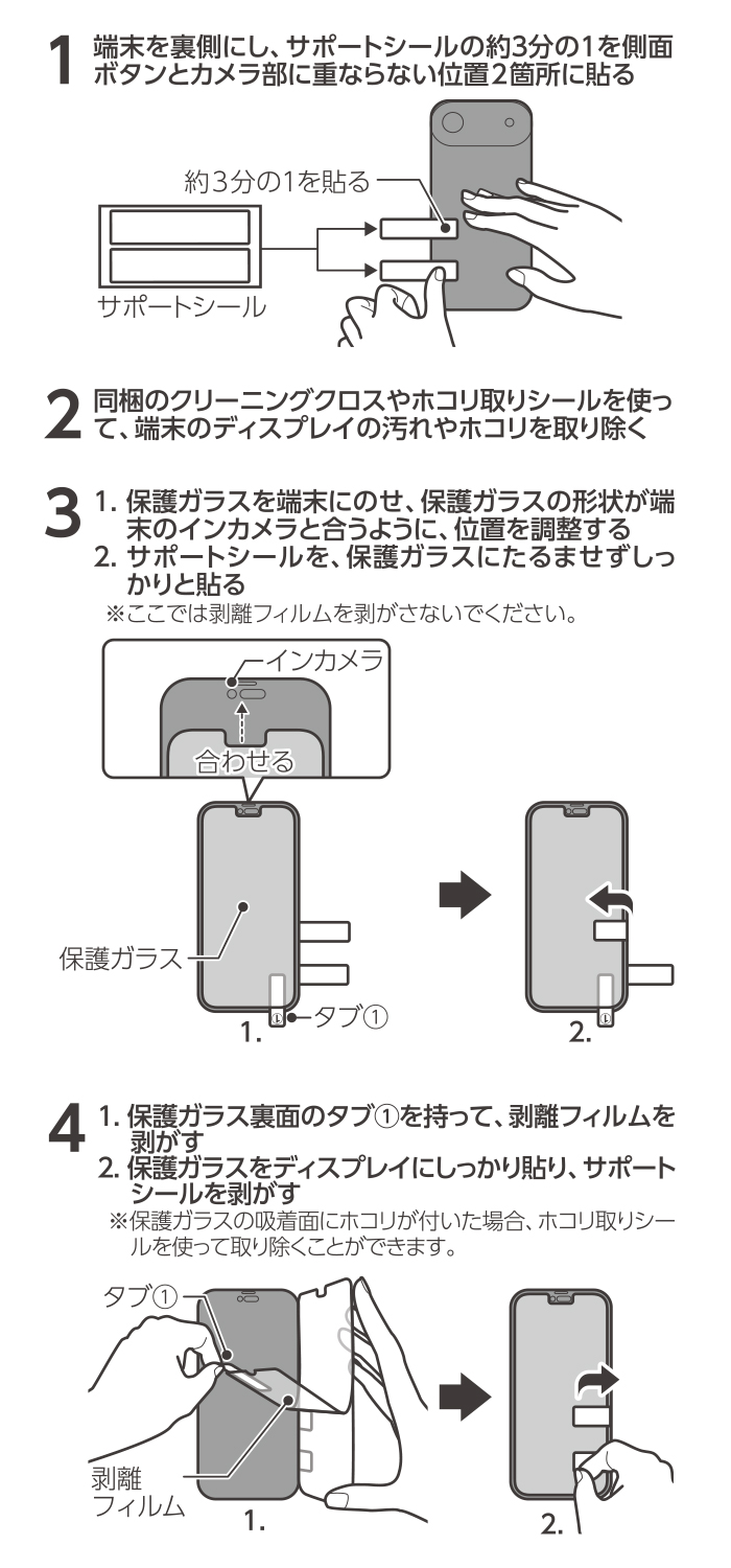 | 製品構成 | 保護ガラス ×1、クリーニングクロス ×1、ホコリ取りシール ×1、サポートシール ×2、取扱説明書/保証書×1 |