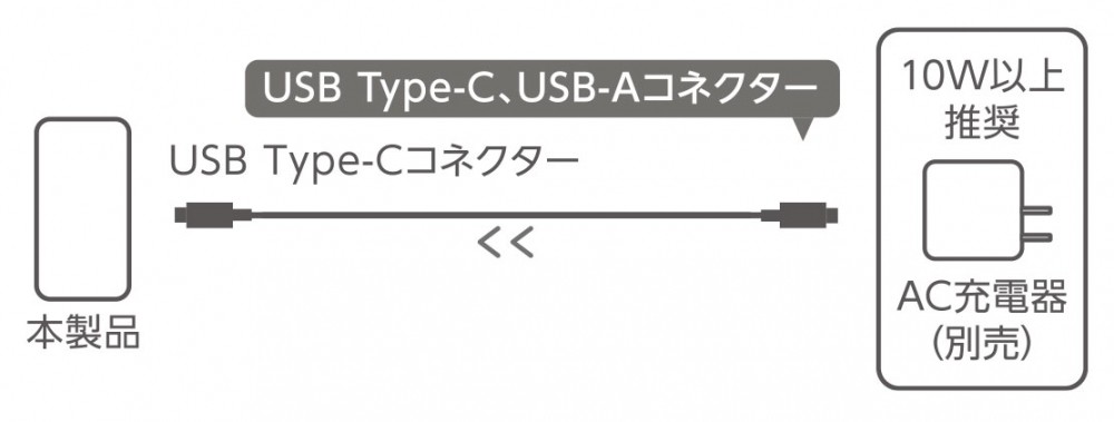 ※USB Type-Cコネクター - USB-Aコネクター以外の充電ケーブルは同梱しておりません。別途ご購入またはご用意ください。