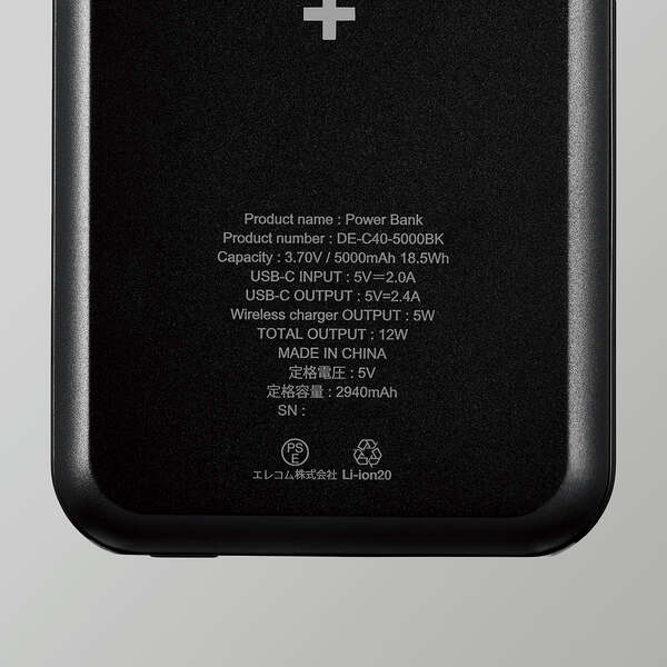 エレコム モバイルバッテリー リチウムイオン電池 ワイヤレス充電器 マグネット対応 5000mAh 2.4A USB-C入出力1ポート