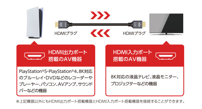 PS5(TM)を含むゲーム機の映像信号と音声信号の伝送を実現し、100Mbpsのイーサネット通信にも対応しています。