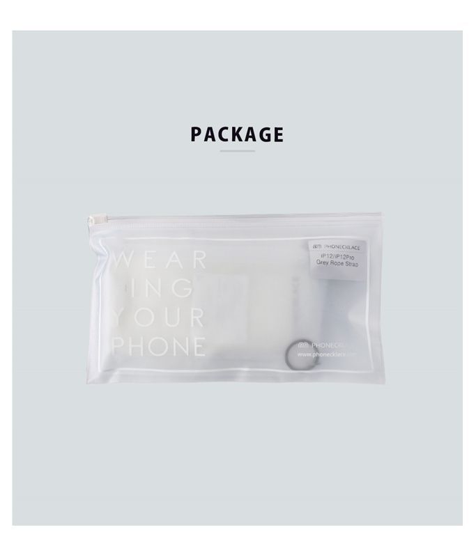 ブランド名「PHONECKLACE」が刻印された、スタイリッシュなリング型のロゴ入りチャームがついています。チェーンストラップと合う色で構成されているので、統一感を楽しめます。