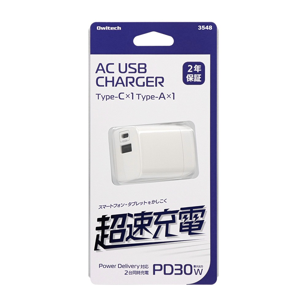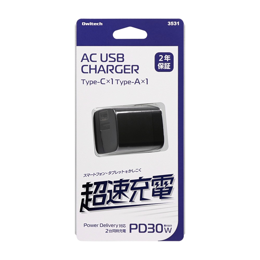 オウルテック 小型AC充電器 PD30W GaN採用