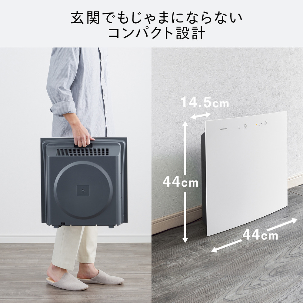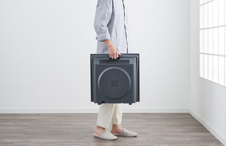 使用中の衛生面にも考慮し、よく触れるフロントパネルと操作ボタンは抗菌※6加工に。また、暮らしに馴染むシンプルなデザインを追求。置き場所をとらない奥行14.5㎝の薄さで、コンパクトなサイズに設計しました。
