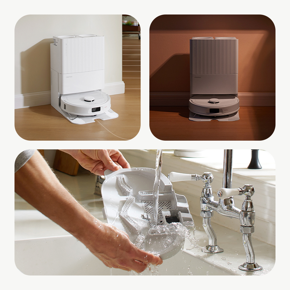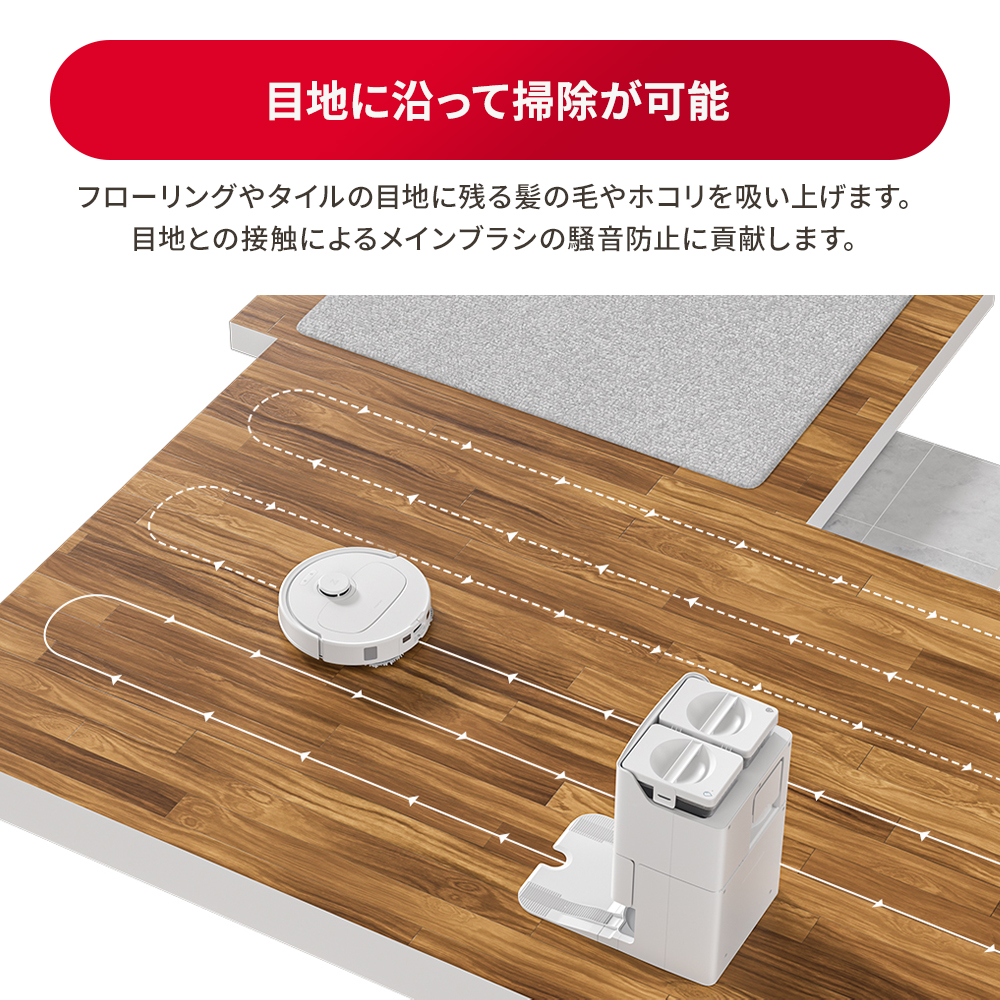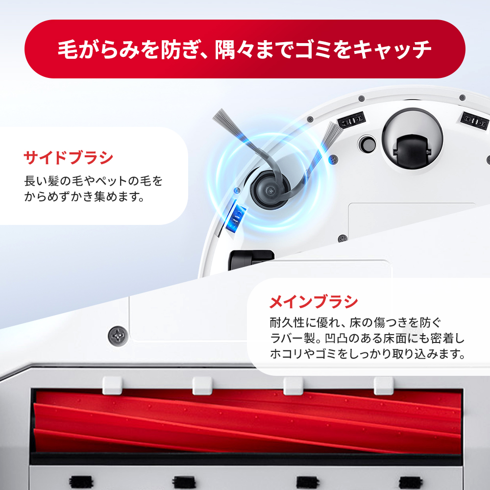 ロボット掃除機本体、4way全自動ドックQL、ベースステップ、電源ケーブル、使い捨て紙パックC、丸形モップクロス |