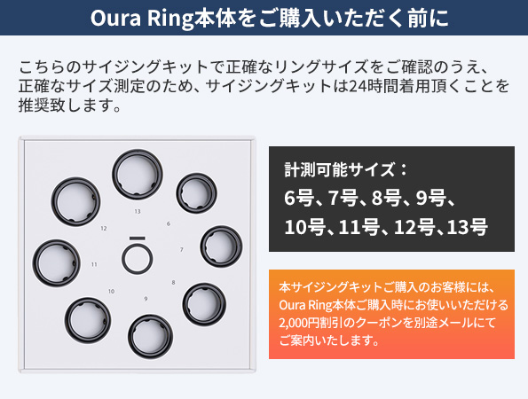 本サイジングキットご購入のお客様にはUltrahuman Ring Air本体ご購入時にお使い頂ける2,000円割引のクーポンを別途メールにてご案内いたします。